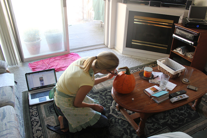When we were at Green Bluff yesterday, we picked a pumpkin off the vine for this very craft purpose. Today while the applesauce was cooking in the crockpot, I had time to get my craft on.
